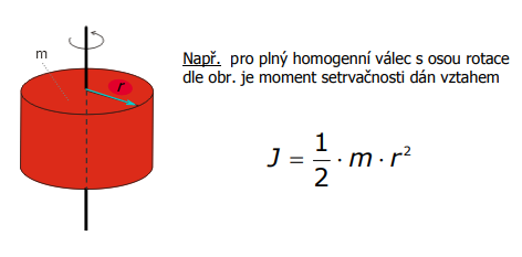 Moment setrvačnosti (inertia, J = ?? kg.cm2) je fyzikální veličina, která vyjadřuje míru setrvačnosti tělesa při otáčivém pohybu. Její velikost závisí na rozložení hmoty v tělese vzhledem k ose otáčení a zda osa otáčení prochází či neprochází těžištěm tělesa. Největší setrvačnost (J) má těleso, které má hmotu (resp. své těžiště) soustředěno, co nejdále od osy rotace. Velikosti momentů setrvačnosti pro homogenní pravidelná tělesa lze nalézt v běžných fyzikálních tabulkách.